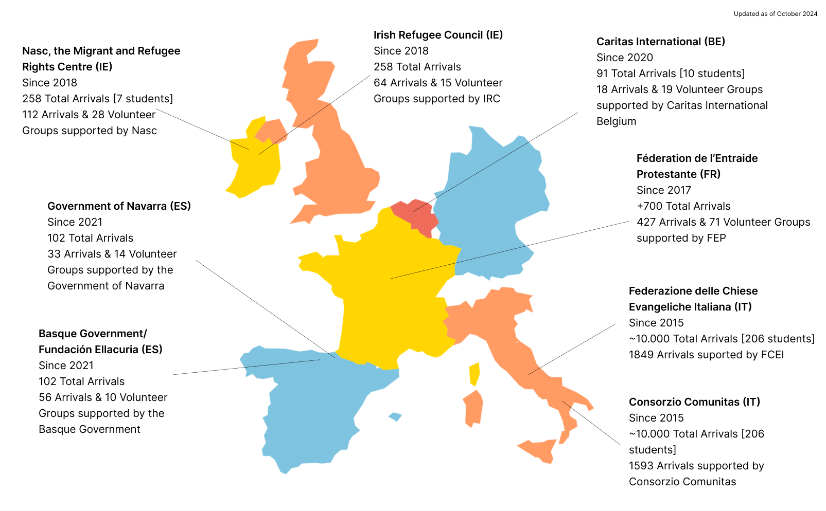 The project is implemented in five countries - Belgium, France, Ireland, Italy, and Spain- where our network members have community sponsorship programs in place.